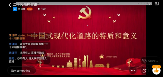 2022年12月9日下午,航空航天學(xué)院黨的二十大精神宣講會(huì)暨“先鋒學(xué)子”全員培訓(xùn)報(bào)告會(huì)通過線上釘釘直播的形式順利舉行。馬克思主義學(xué)院“百人計(jì)劃”研究員包大為作“中國式現(xiàn)代化道路的特質(zhì)和意義”的主題報(bào)告。航空航天學(xué)院全體師生黨員,材料科學(xué)與工程學(xué)院、控制科學(xué)與工程學(xué)院、高分子科學(xué)與工程學(xué)系全體師生黨員參與培訓(xùn)。會(huì)議由材料科學(xué)與工程學(xué)院黨委副書記王育萍主持。