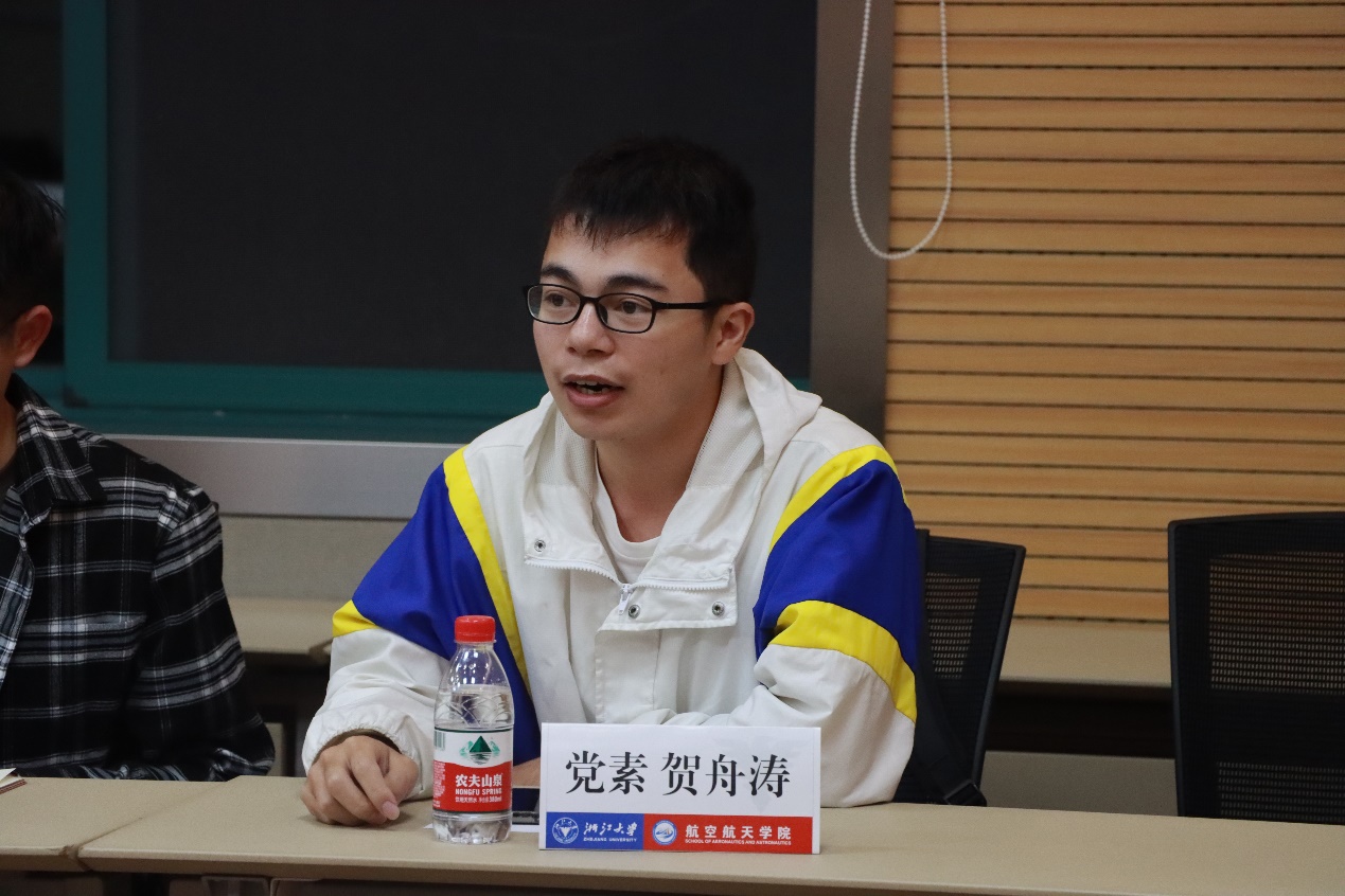 隨后,浙江大學校學生會成員田憬源同學就自己三年的學生工作經驗分享了自己的感想。他談到了權衡學生工作與學習的方法,以及二者之間的聯系與區別。指出身為新時代有擔當的新青年要有隨機應變的處事能力,通過學習不斷提高自身業務素質。