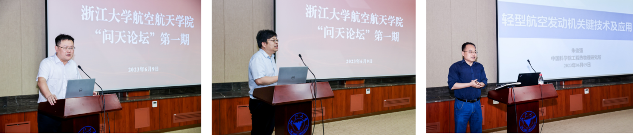6月9日上午,浙江大學航空航天學院第一期“問天論壇”在玉泉校區邵科館順利舉行?!皢柼煺搲笔钦憬髮W創新2030計劃項目——空天探索會聚研究計劃(簡稱“問天計劃”)的交流平臺,旨在邀請海內外頂尖科學家、國家戰略單位和龍頭企事業單位等的戰略科學家、領軍人才等分享空天領域的國家戰略關鍵技術、國際科技前沿、最新基礎研究成果等,為“問天計劃”的實施開闊視野、拓寬思維、注入創新動力、激發創新源泉。中國科學院院士楊衛、中國科學院工程熱物理研究所所長朱俊強受邀為首期“問天論壇”作報告。浙江大學工學部副主任嚴密教授出席活動并為主講嘉賓頒發紀念銘牌?;顒佑珊娇蘸教鞂W院副院長錢勁和王高峰、航空航天學院青年創新與發展促進會會長羅佳奇共同主持。