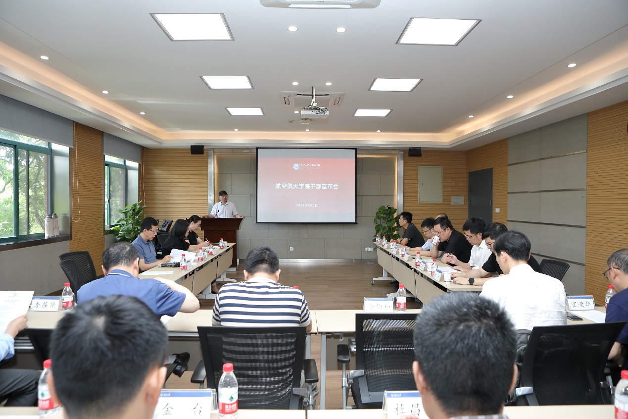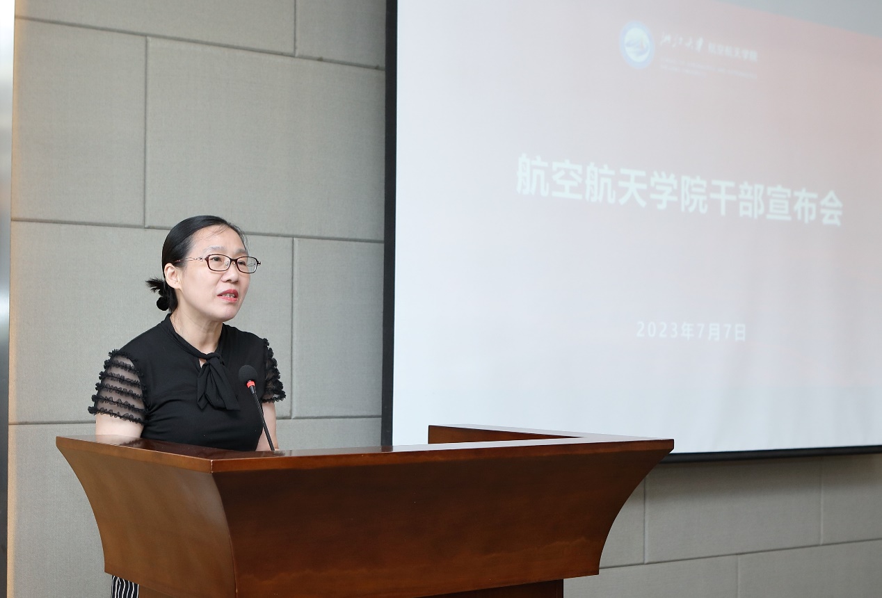 2023年7月7日上午,浙江大學航空航天學院干部宣布會在玉泉校區第五教學樓333會議室舉行。副校長李曉明出席會議并講話、校黨委組織部副處職組織員王芳代表學校宣布干部任命文件。會議由航空航天學院黨委書記劉玉玲主持。