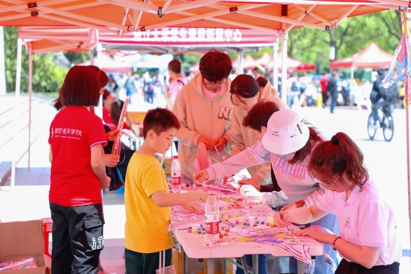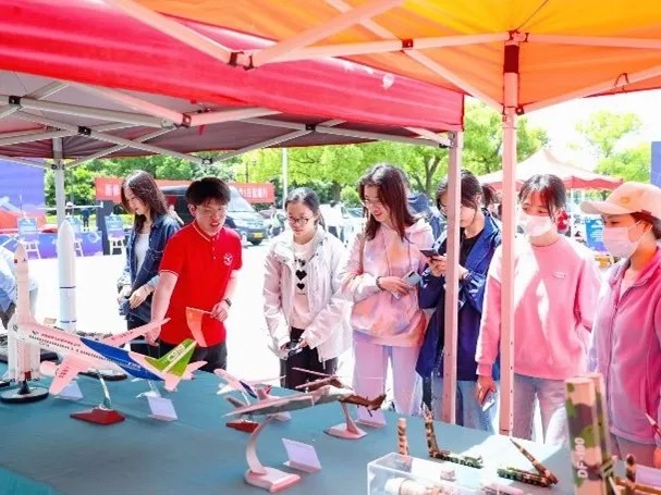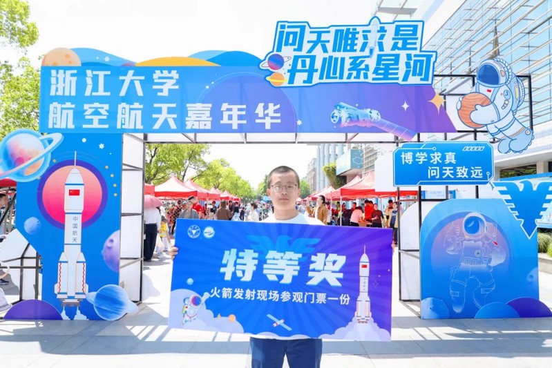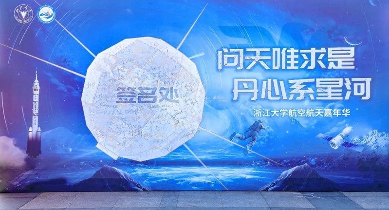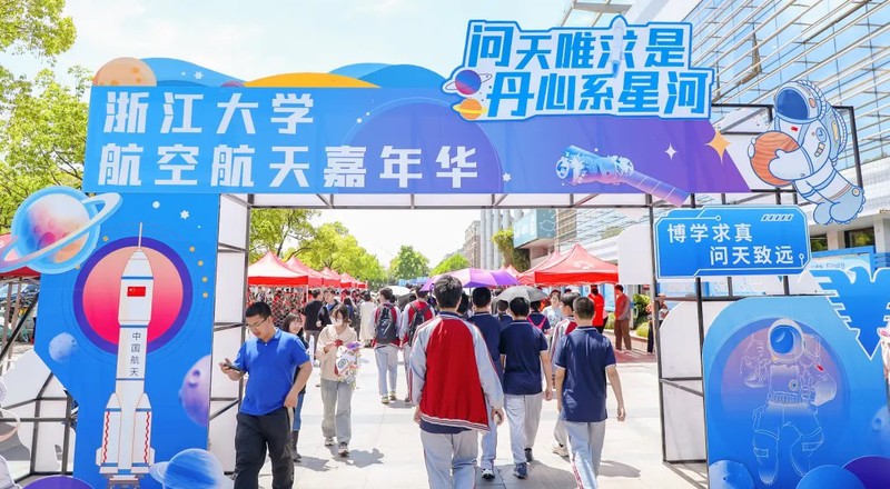 2024年4月24日,是第九個“中國航天日”。浙江大學紫金港校區文化廣場晴空萬里,似火驕陽不褪師生熱情。一場以“問天唯求是,丹心系星河”為主題的航空航天嘉年華活動盛大開幕——來自航空航天學院、浣江實驗室師生自主研發的一件件科研成果實物;來自航天科工集團、航天科技集團、中國空間技術研究院杭州中心、浙江大學交叉力學中心的一款款航空航天模型;“執筆匯蒼穹”“重走航天路”“共繪東方紅”等一個個有趣的主題攤位,吸引了近萬名師生參觀體驗,在求是園中掀起了一股航空航天熱。