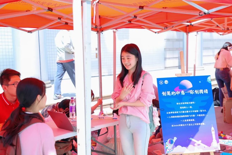 “我與航天日”“重走航天路”“魔法重現術”“尋找力學家”……12個航空航天主題活動攤位前人頭攢動,手持模擬操縱桿體驗“飛行員”,現場快問快答重溫中國航天追星逐夢的激蕩歲月,手繪風箏寄托著師生對飛天夢的希望與憧憬,精彩有趣的互動讓現場師生在這個特別的日子里共同感受中國航天 “扶搖直上九萬里”的壯志豪情。