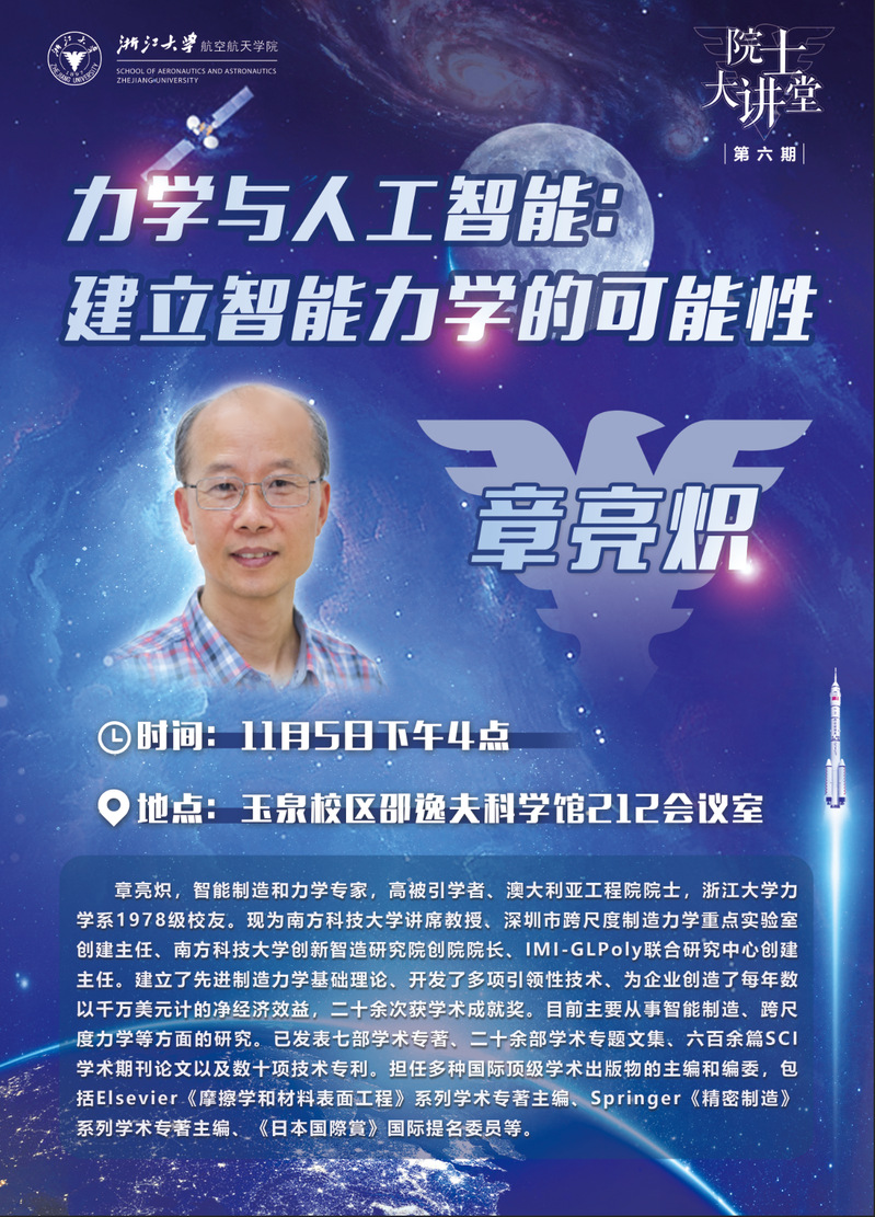 為弘揚航天精神,激發航院學子追求科技創新、勇攀科學高峰的熱情,激勵廣大學子承空天精神、啟問天夢想的遠大志向,特舉辦第六期“院士大講堂”。具體事項通知如下: