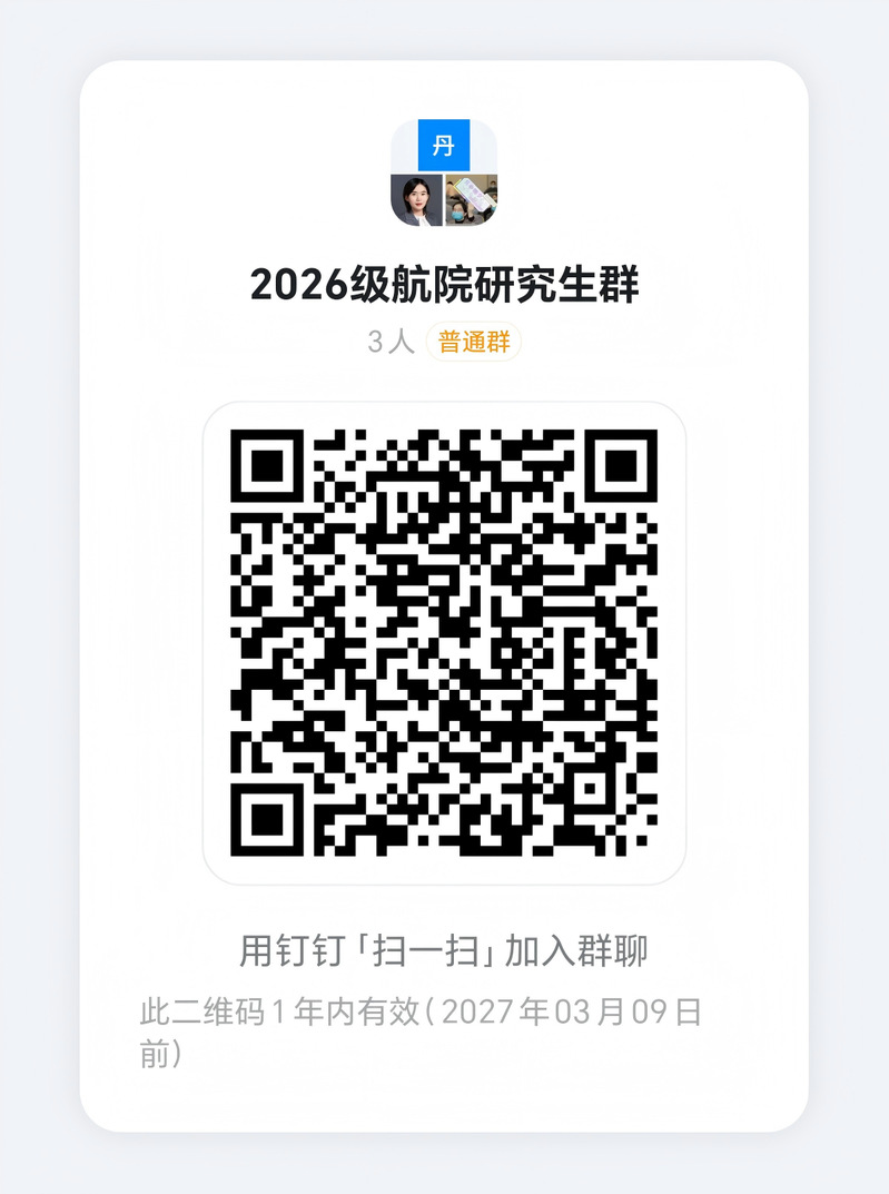 4.請擬錄取同學(xué)下載“釘釘”app,加入2026級(jí)航院研究生釘釘群。按照以下格式實(shí)名備注申請進(jìn)群:2026博/碩+專業(yè)簡稱+姓名,請確保是本人進(jìn)群,不接受其他人員進(jìn)入新生群,敬請諒解。