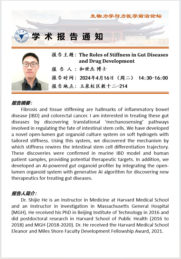 2024年4月16日和世杰博士學(xué)術(shù)報告通知