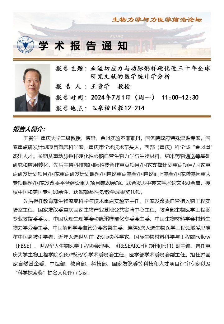 2024年7月1日重慶大學王貴學教授學術報告通知