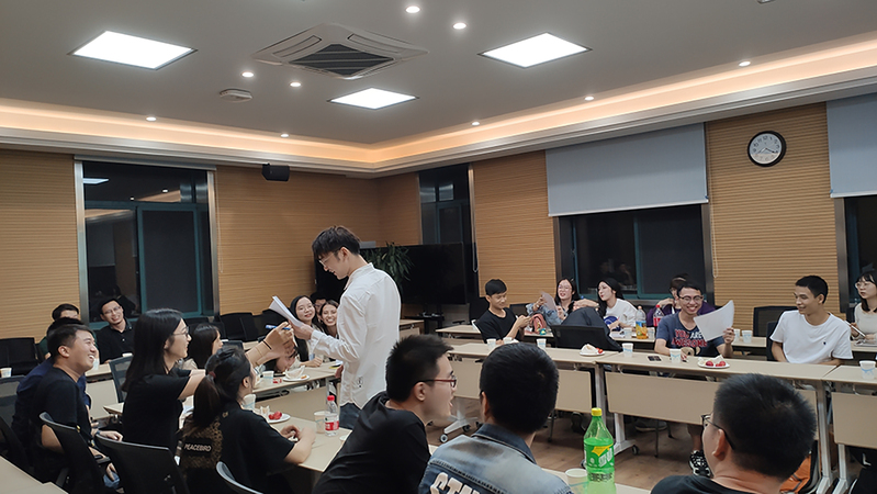 交流會的第二個環節是“找找我是誰”和“最強大腦”的小游戲環節。“找找我是誰”就是根據老師們年輕時的照片,讓大家對全體流體所的導師進行一一介紹,當新生們看到自己導師到時候,主動站起來介紹自己以及自己的導師,并根據自己的了解介紹導師以及師兄師姐的研究方向,以及自己將要進行的方向,之后邀請相應的師兄師姐補充交流,其主要目的是讓新生同學對研究所各個課題組有一個簡單的認識,對各個課題組和老師的研究方向做介紹。通過本環節新生們對整個研究所的導師都有了一個清晰的認識,并對自己的研究法方向和整個實驗室的研究現狀都有了大概了解。而“最強大腦”則考察了大家對于浙大,對于航空航天學院,對于流體力學的了解程度。活動現場,大家激情飽滿。