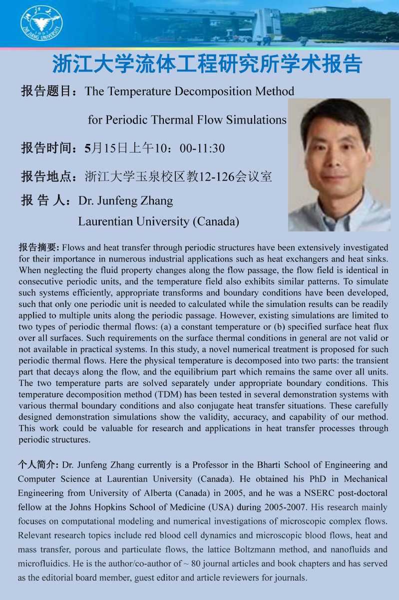 加拿大Laurentian大學Junfeng Zhang教授報告通知(2023.05.15 10:00-11:30)