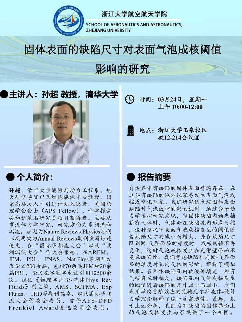 2025.03.24 固體表面的缺陷尺寸對表面氣泡成核閾值影響的研究 孫超 清華大學