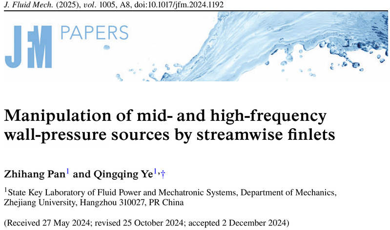 浙江大學葉青青研究員團隊發表論文:流向翅片對湍流邊界層壁面壓力源的調控機制