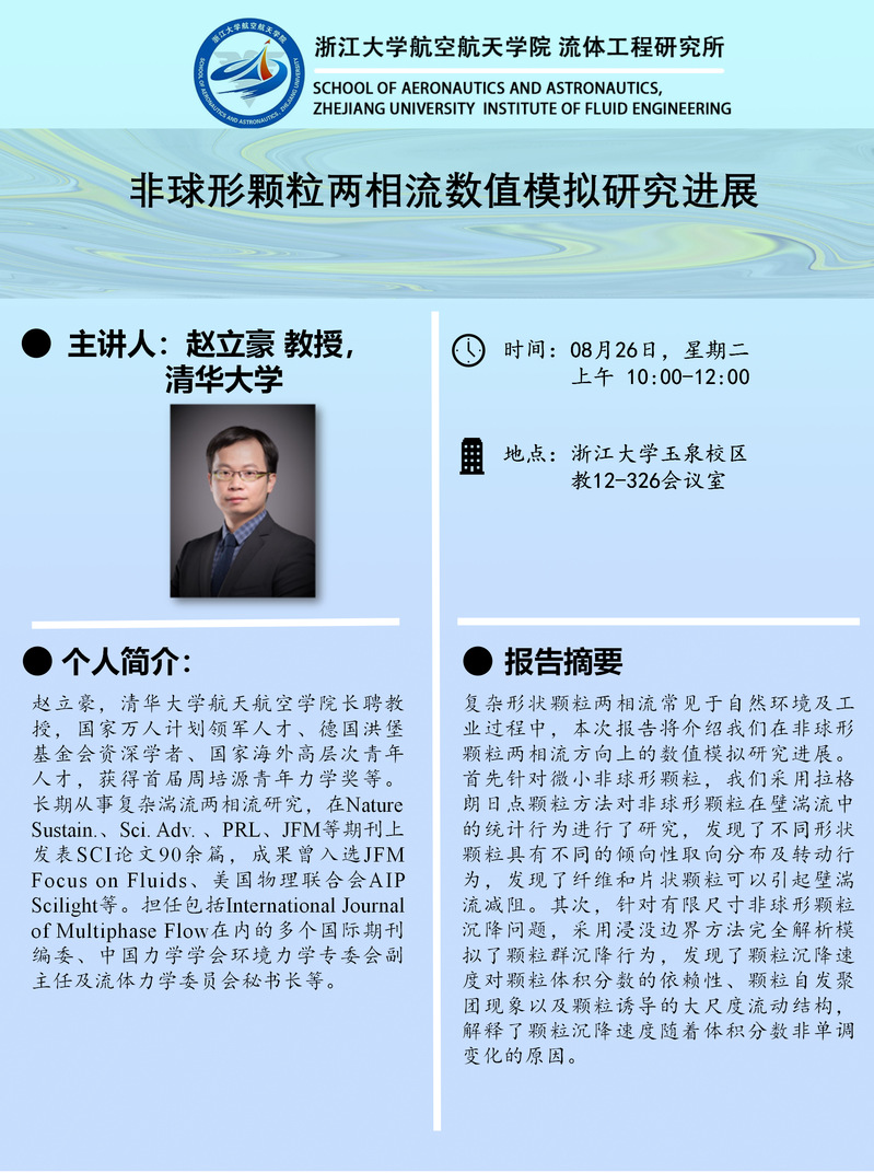 清華大學航空航天學院 趙立豪教授學術報告通知(2025.08.26)