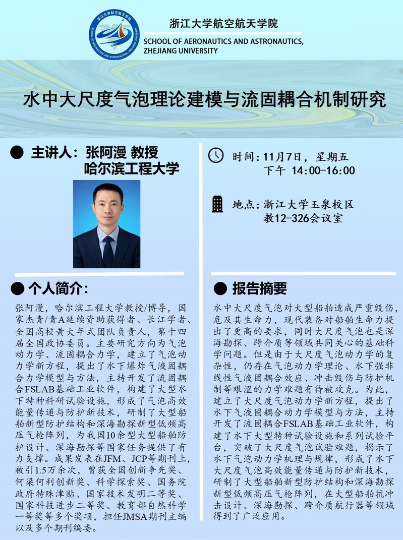 2025.11.07 水中大尺度氣泡理論建模與流固耦合機制研究 張阿漫 哈爾濱工程大學