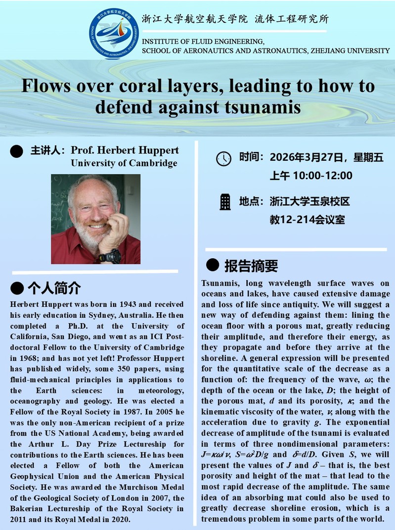 劍橋大學 Herbert Huppert教授 學術報告通知(2026.03.27)